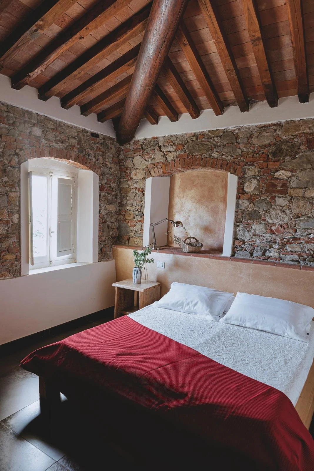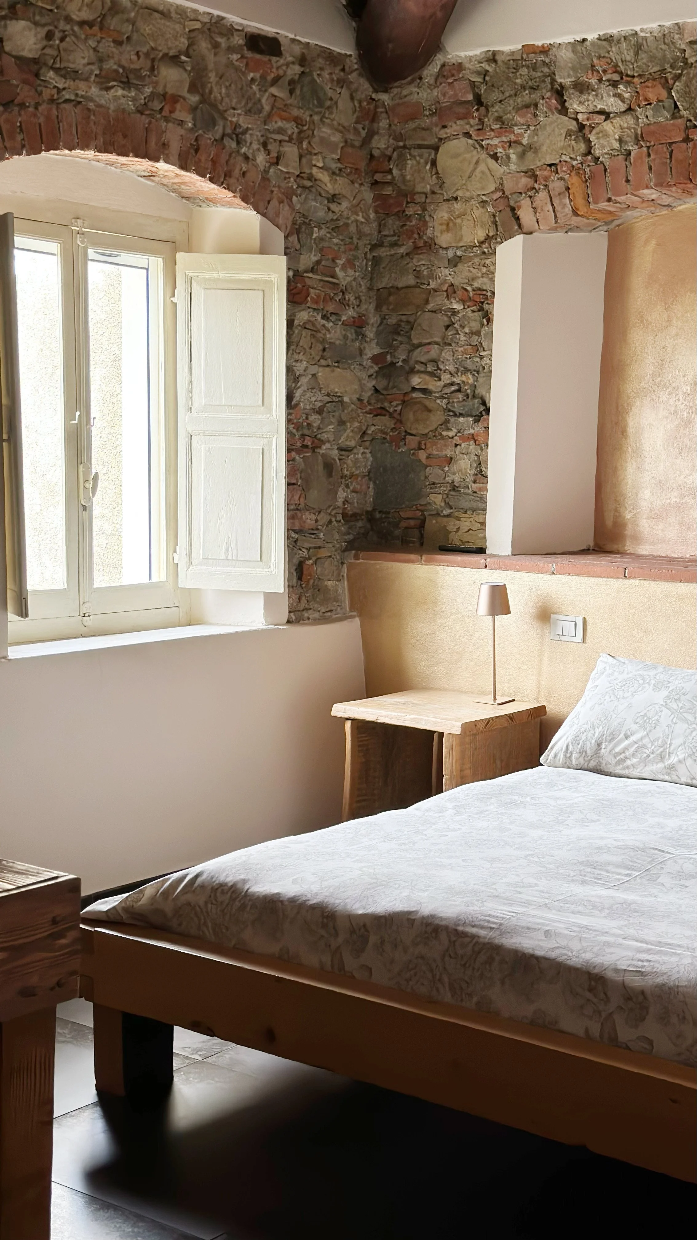 Our rooms are cosy and rich in history. Each one preserves the wooden ceilings and the original stone walls of the nineteenth century, built by hand by our great-grandparents.